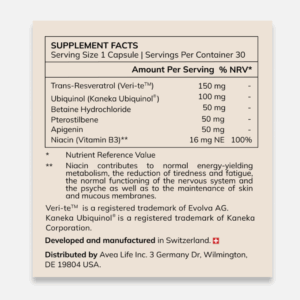 Набор представляет собой комбинацию двух продуктов: NMN (никотинамид-мононуклеотид) и формулы Booster. Точный состав и пищевая информация указаны на упаковке каждого отдельного продукта.