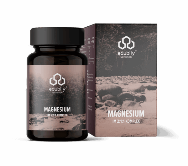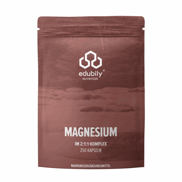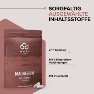 Ингредиенты: Magnesiumbisglycinat, Trimagnesiumdicitrat, гидроксипропилметилцеллюлоза (оболочка капсулы), Magnesiumcarbonat, пиридоксаль‑5‑фосфат (витамин B6).