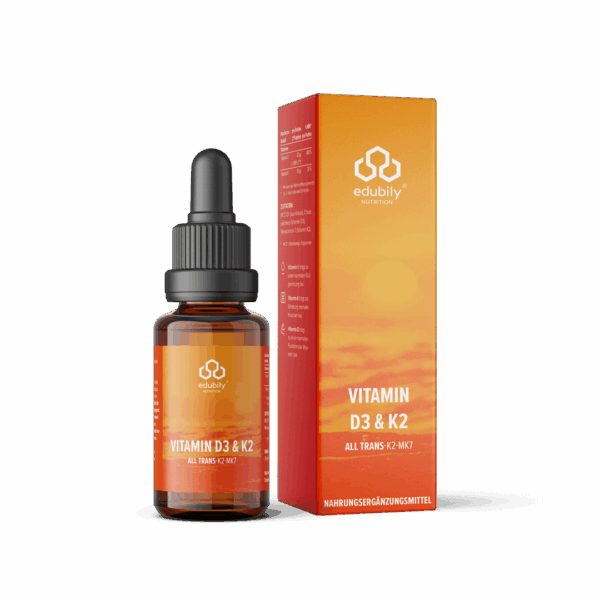 На порцию (1 капля): Витамин D3 (холекальциферол) 20 мкг (= 800 МЕ) — 400 % NRV*; Витамин K в форме K2 (менахинон‑7) 15 мкг — 20 % NRV. Ингредиенты: MCT‑масло (из кокоса), холекальциферол (витамин D3), менахинон‑7 (витамин K2). Содержимое: 1020 капель.
