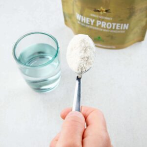 Ключевые пищевая ценность (пример — ваниль): на 100 г: энергия 1550 kJ / 366 kcal; жиры 4,9 г; углеводы 5,4 г (в т.ч. сахара 4,7 г); пищевые волокна 0,1 г; белок 75,0 г; соль 0,97 г. На порцию (= 25 г порошка / 200 мл воды): энергия 388 kJ / 92 kcal; белок 18,8 г.
