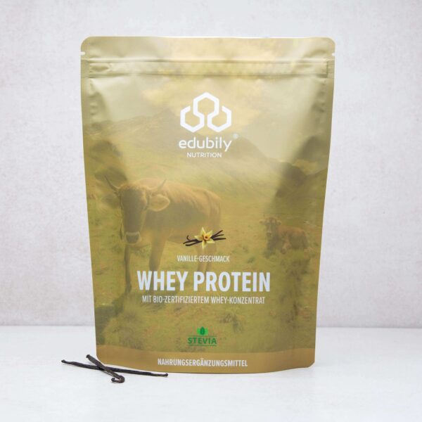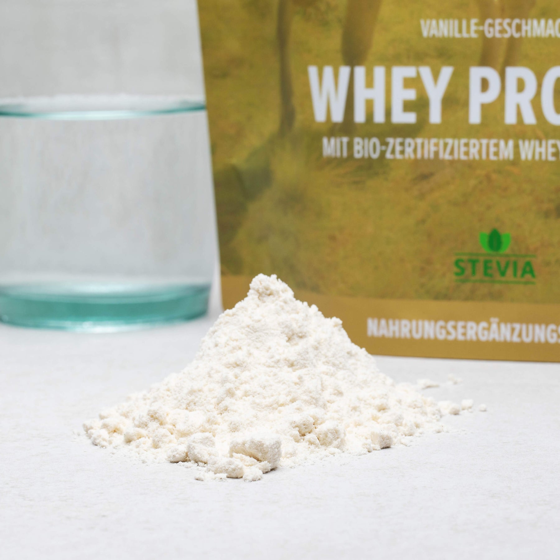 BIO Molkenproteinkonzentrat* (концентрат сывороточного белка), ароматизатор, подсластитель: стевиолгликозиды из стевии; в некоторых вкусах добавлены красители (напр., антоцианы, куркумин) или растворимый кофе. *из контролируемого органического сельского хозяйства.