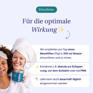 10 г размешать (мерная ложка) в минимум 300 мл воды (холодной или тёплой) и выпить — желательно вечером для расслабления, перед сном или при острых стрессовых ситуациях. Подходит для длительного ежедневного приёма.