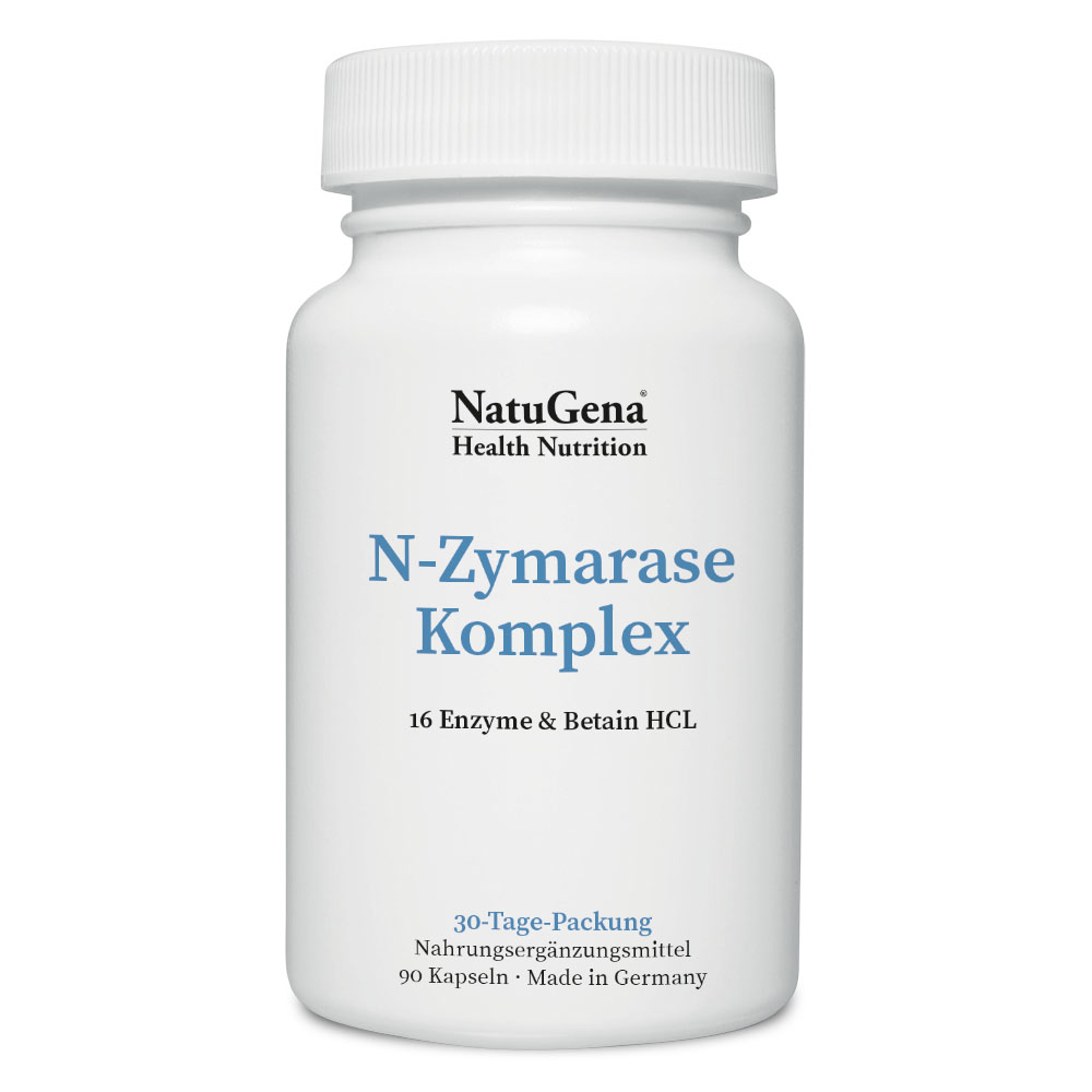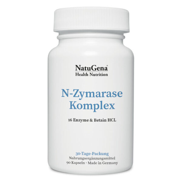 Содержит 16 различных ферментов, включая протеазный комплекс, липазный комплекс (I и II) и целлюлазный комплекс (I и II); обогащён бетайном HCl (в сумме 1.200 mg на суточную дозу), растительными пищеварительными ферментами бромелайном и папаином; капсула: HPMC. Без красителей, консервантов, без лактозы и глютена; вегетарианский/веганский.