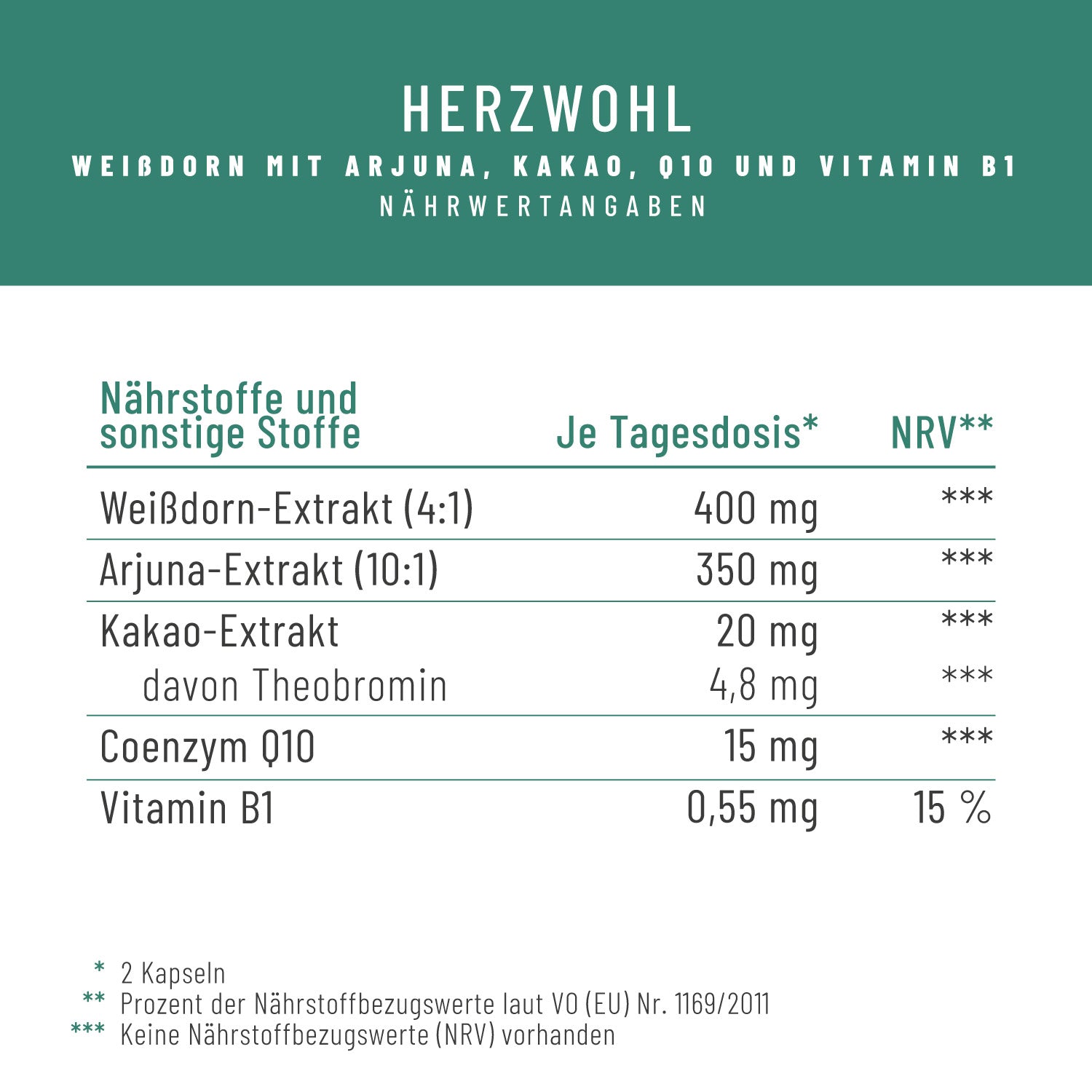 HERZWOHL направлен на поддержку сердечного самочувствия и энергетического обмена; для витамина B1 (тиамин) имеются утверждённые сведения: способствует нормальной функции сердца и нормальному энергетическому обмену.