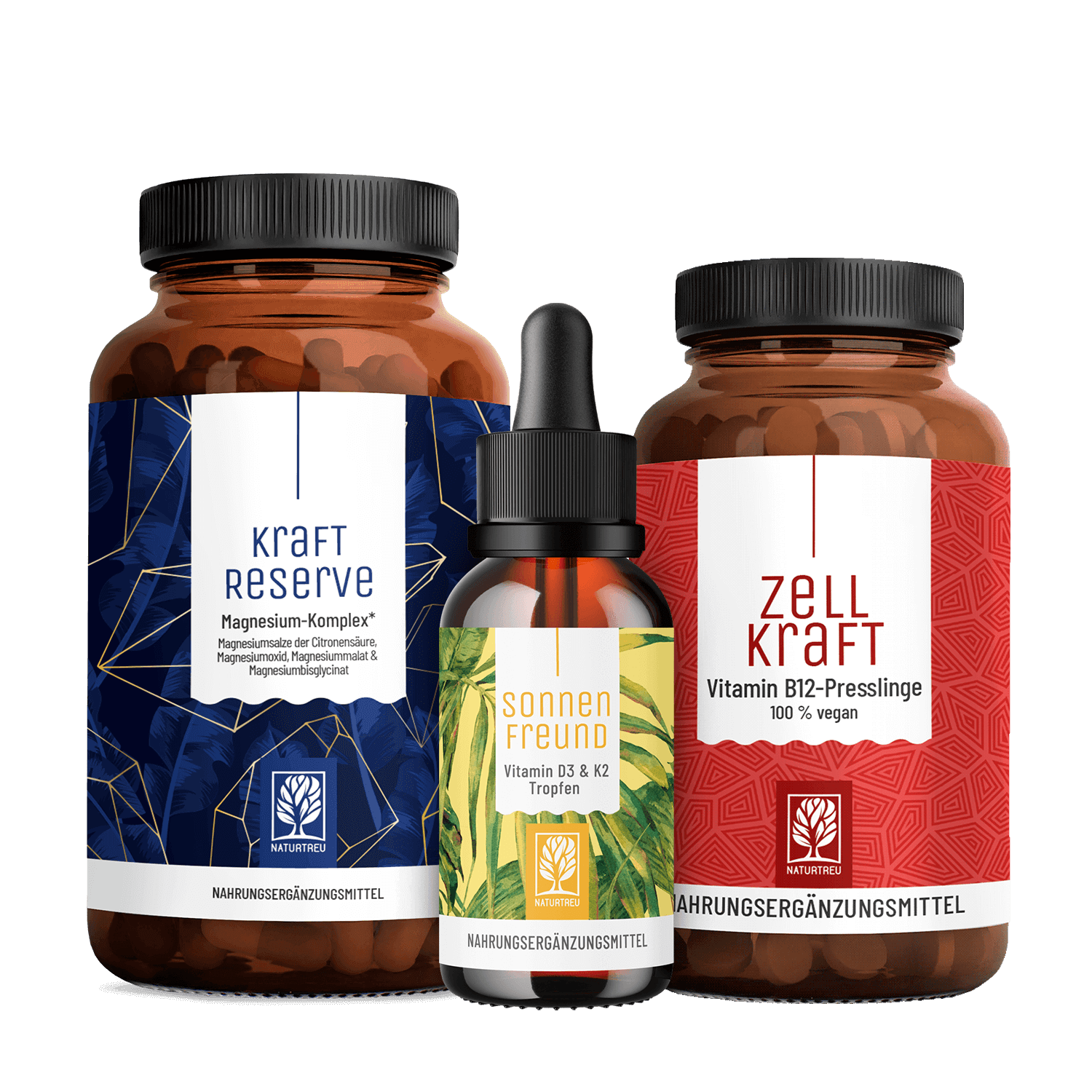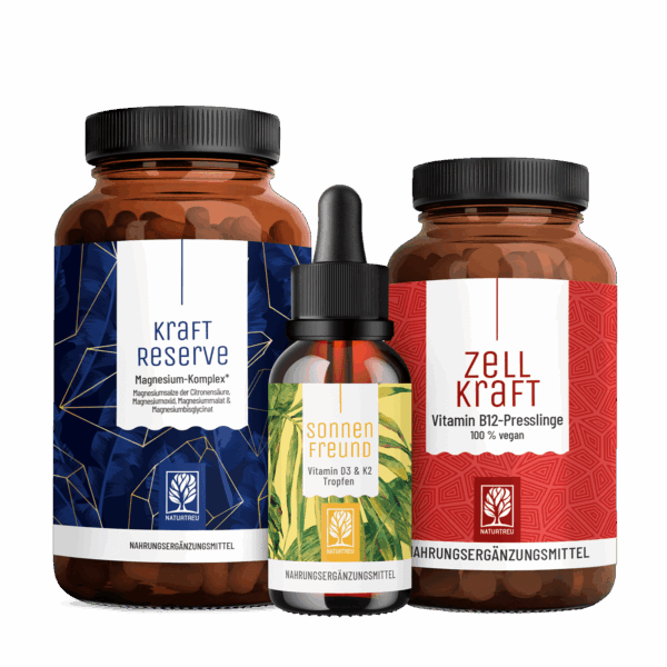 Sonnenfreund: 1 капля в день (1 капля = 25 μg / 1.000 I.E.). Kraftreserve: 2 капсулы в день (суточная доза = 400 mg магния); при чувствительности начать с 1 капсулы и постепенно увеличить до 2 капсул. Zellkraft: 1 таблетка в день (500 µg витамина B12).