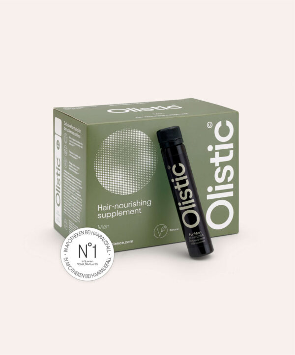 Olistic Men — питьевая пищевая добавка, разработанная для поддержки сохранения волос и нормального роста волос у мужчин старше 18 лет; рекомендуется при выпадении волос и их истончении. Каждая упаковка содержит 28 дневных доз (28 флаконов) по 25 мл.
