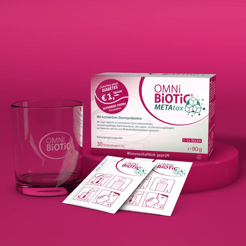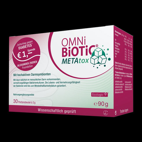 OMNi-BiOTiC® METAtox подходит людям, у которых образ жизни (напр., избыток сахара, вредные жиры, недостаток движения) может негативно влиять на микрофлору кишечника и кишечный барьер; для поддержки разнообразия и функции кишечной микробиоты.